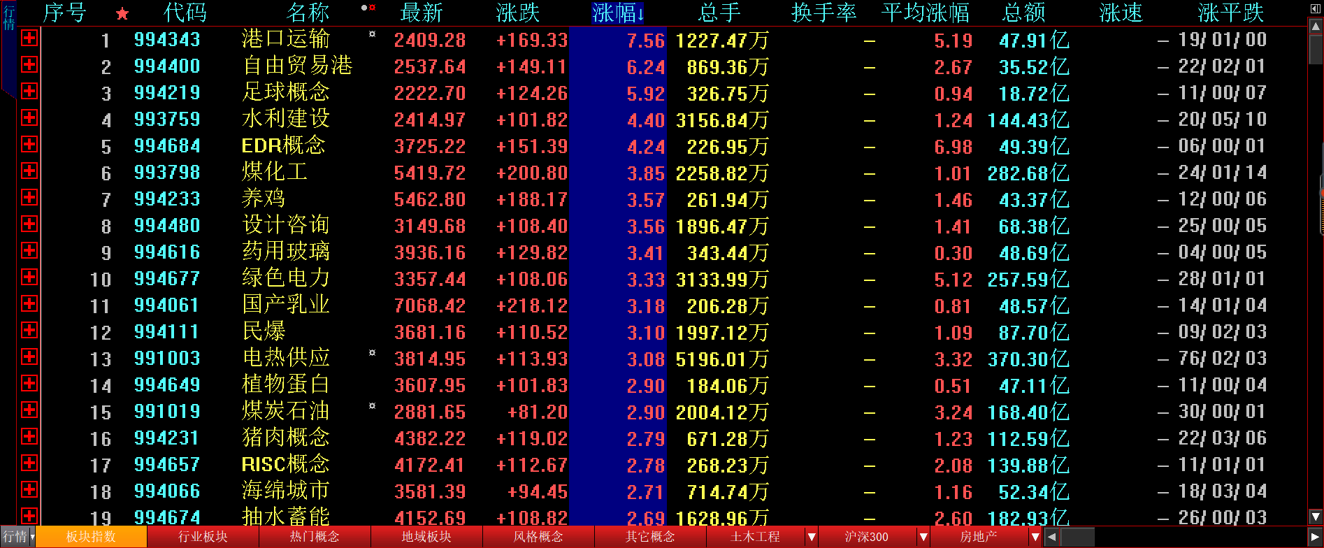 從熱門板塊來看,港口運(yùn)輸板塊領(lǐng)漲兩市,上港集團(tuán)、天津港、寧波港、招商港口悉數(shù)漲停,自由貿(mào)易港、足球概念等板塊漲幅居前。此外,海底光纜、有機(jī)硅等板塊回調(diào)幅度較大,分別下跌2.47%、1.29%。