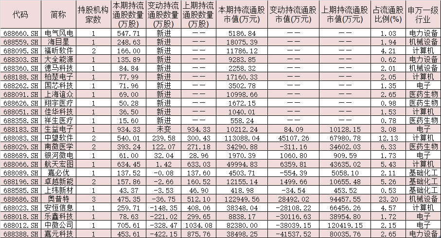 表1:今年二季度獲社?;鸪謧}的科創(chuàng)板公司股票