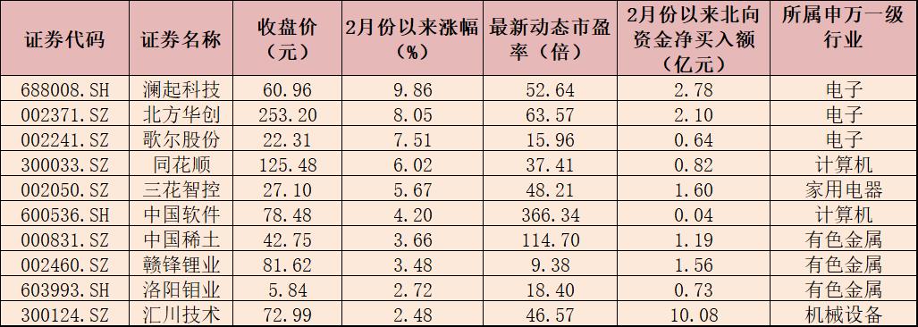表:2月份以來漲幅居前10的活躍股一覽