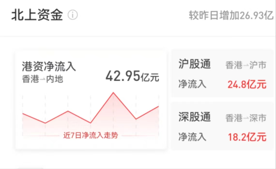 值得關(guān)注的是,周二,北向資金凈買入金額達(dá)42.95億元,連續(xù)7個交易日實(shí)現(xiàn)凈買入。