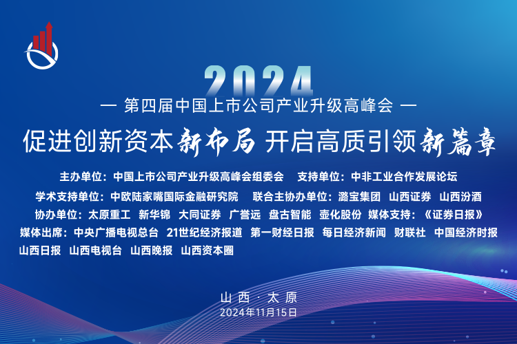 為全面貫徹落實(shí)黨的二十屆三中全會(huì)和中央政治局會(huì)議精神,堅(jiān)定不移推進(jìn)經(jīng)濟(jì)社會(huì)高質(zhì)量發(fā)展,助推戰(zhàn)略性新興產(chǎn)業(yè)成為經(jīng)濟(jì)增長(zhǎng)“倍增器”、發(fā)展方式“轉(zhuǎn)換器”和產(chǎn)業(yè)升級(jí)“助推器”,中國(guó)上市公司產(chǎn)業(yè)升級(jí)高峰會(huì)組委會(huì)、山西資本研究會(huì)、山西第一財(cái)經(jīng)新媒體平臺(tái)《山西資本圈》擬組織召開第四屆中國(guó)上市公司產(chǎn)業(yè)升級(jí)高峰會(huì)。