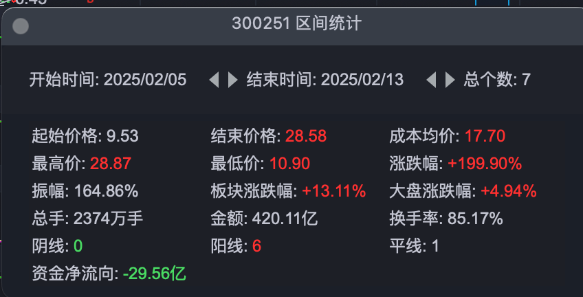東方財富行情軟件顯示,2月5日至2月13日(午間收盤),7個交易日內(nèi),光線傳媒漲幅達(dá)199.9%,其中2月10日、2月11日、2月12日3個交易日光線傳媒均以20CM漲停收盤。目前,光線傳媒已成為A股市值最高的影視院線上市公司。