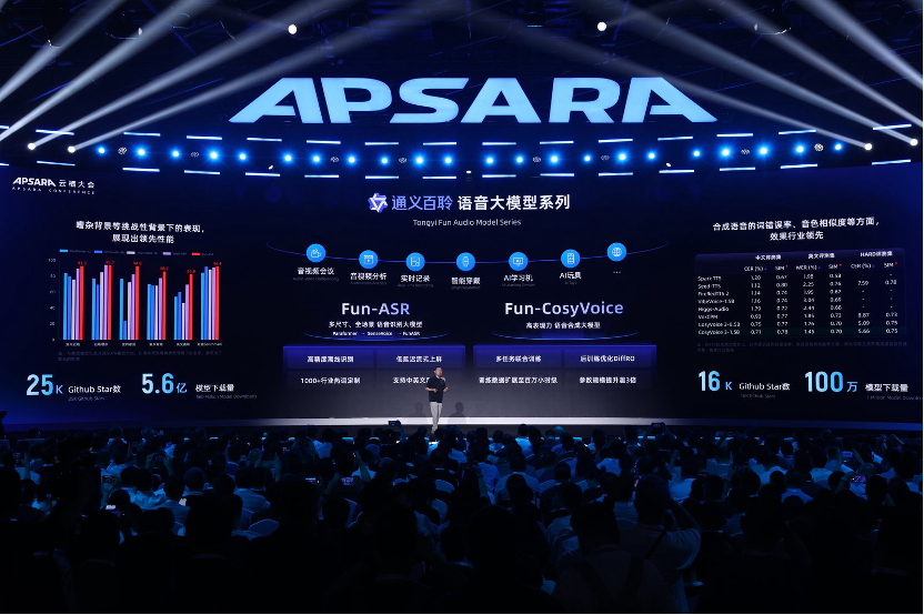 Fun-ASR基于數(shù)千萬(wàn)小時(shí)真實(shí)語(yǔ)音數(shù)據(jù)訓(xùn)練而成,具備強(qiáng)大的上下文理解能力與行業(yè)適應(yīng)性,可實(shí)時(shí)處理10多種語(yǔ)言;Fun-CosyVoice可提供上百種預(yù)制音色,適用于客服、銷售、直播電商、消費(fèi)電子、有聲書(shū)、兒童娛樂(lè)等場(chǎng)景。目前,通義百聆開(kāi)源模型的下載量已超5.6億。