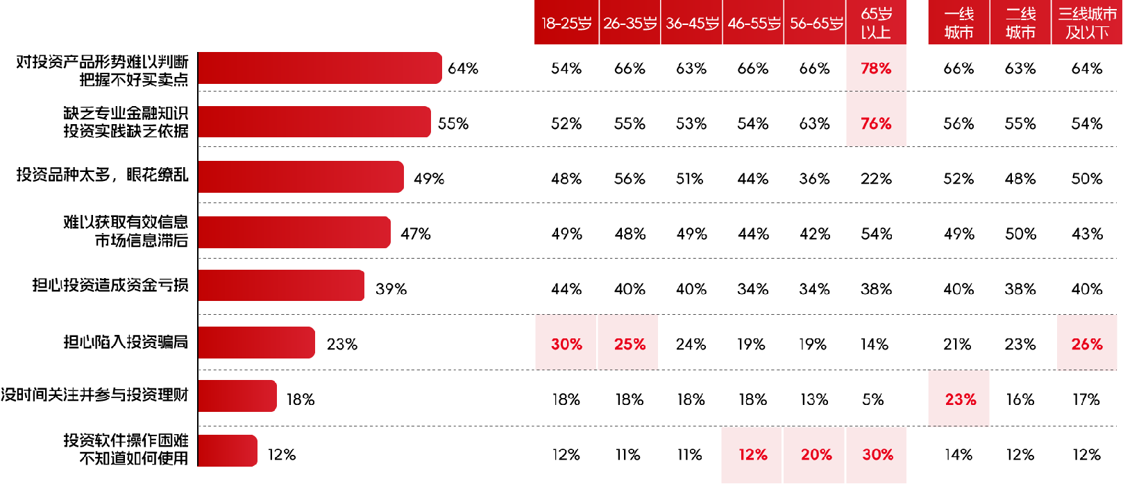 不同個(gè)人投資者在投資過程中的困擾(資料來源:中央財(cái)經(jīng)大學(xué)中國財(cái)富管理中心)