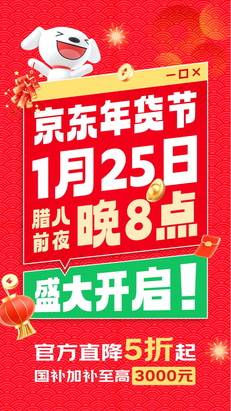 本報訊 (記者梁傲男)1月25日晚8點,京東年貨節(jié)盛大開啟。不僅有官方直降5折起、國補加補至高3000元等重磅福利,而且還邀請到蔡明、雷佳音、劉宇寧、張藝興、章若楠等明星加盟助陣,推出四大驚喜日,為消費者帶來多檔驚喜活動。