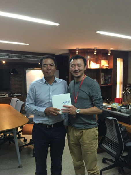 知乎聯(lián)合創(chuàng)始人黃繼新向張小龍贈送知乎出版的第一本實體書(企業(yè)供圖)