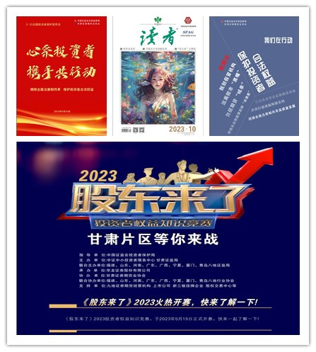 在宣傳方面,甘肅證券期貨業(yè)協(xié)會借力《讀者》知名度高、受眾面廣的閱讀資源優(yōu)勢,與甘肅證監(jiān)局繼續(xù)聯(lián)合推出特色形象刊,讓投資者教育與賽事宣傳平添一絲親和力與“文藝范”。按甘肅片區(qū)特色活動“點亮城市圈”構(gòu)想,為9個賽區(qū)96個地級市統(tǒng)一印制了宣傳旗幟,籍此將《股東來了》宣推活動覆蓋9大賽區(qū)所有城市,以薪火相傳、星火燎原之勢,展現(xiàn)9大賽區(qū)團結(jié)協(xié)作共助投保的精神,呼應(yīng)中國證監(jiān)會倡導(dǎo)的“心系投資者、攜手共行動”的大投保理念。