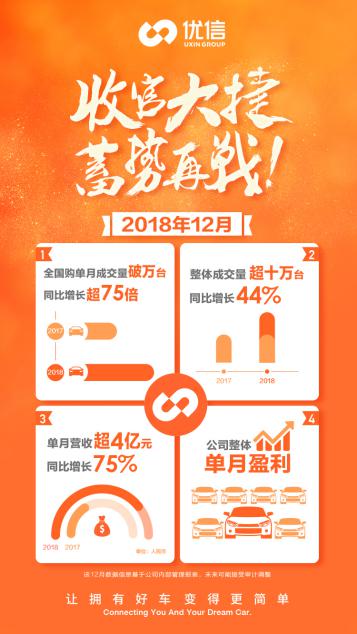 據(jù)悉,優(yōu)信在2018年12月份實現(xiàn)了單月整體成交量超10萬輛,同比增長44%,其中全國購單月成交量破1萬輛,同比增長超75倍,二手車跨區(qū)域交易的爆發(fā)已成為新增長點,將持續(xù)帶動業(yè)績增長。