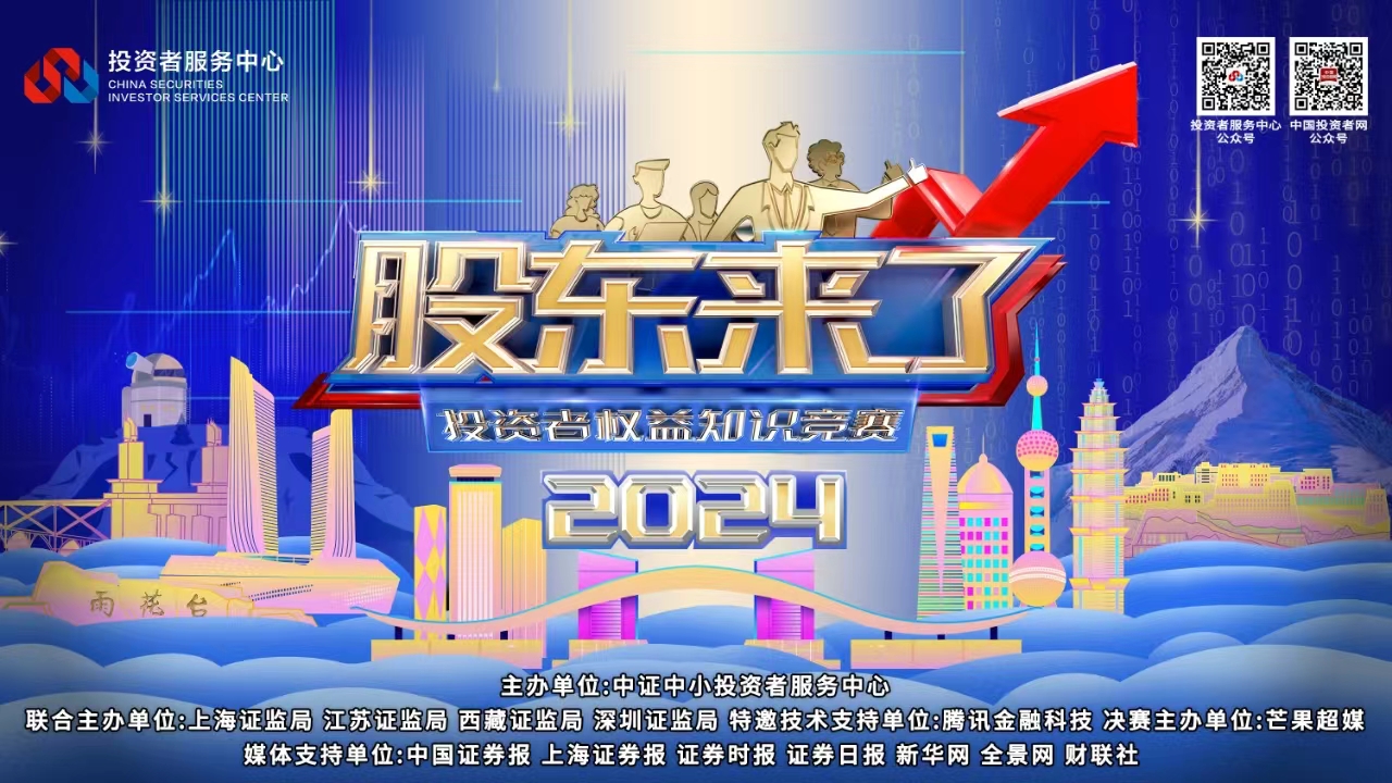 5月15日,《股東來了》(2024)投資者權益知識競賽正式啟動?!豆蓶|來了》(2024)由中證中小投資者服務中心(簡稱投資者服務中心)聯(lián)合上海、江蘇、西藏、深圳四地證監(jiān)局攜手騰訊集團、芒果超媒共同舉辦。[詳細]